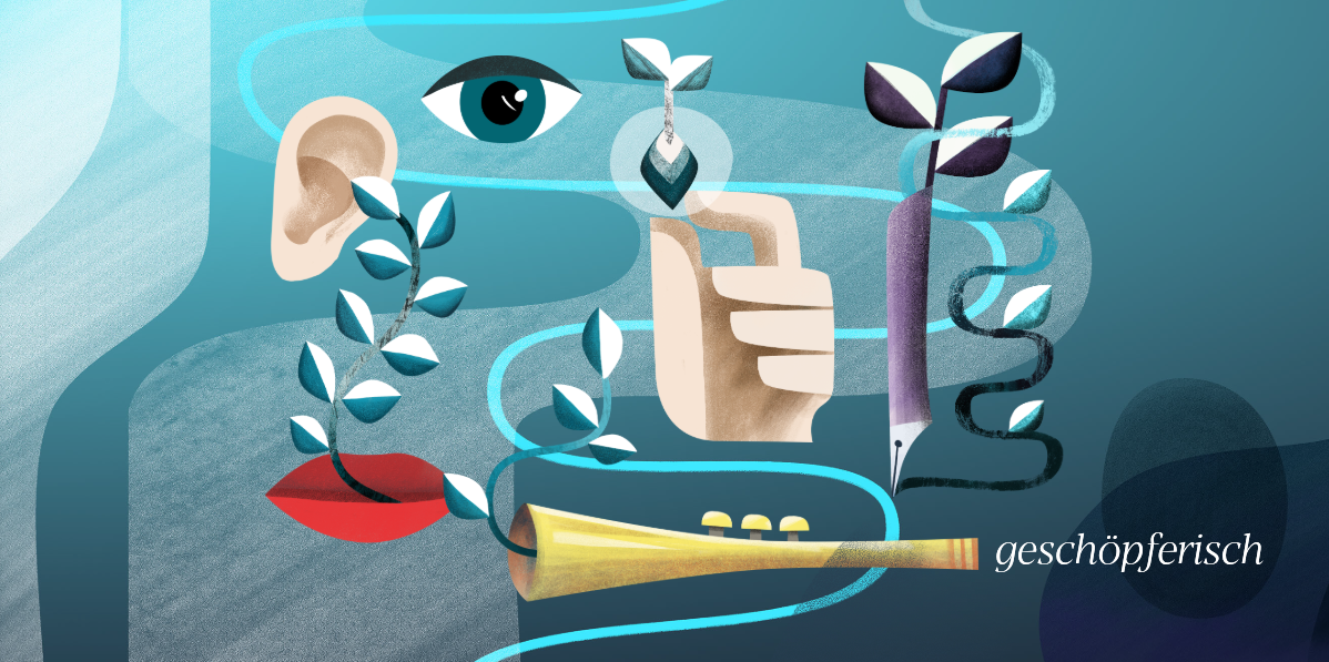 Unsere Bildsprache zur Festival-Ausgabe 2026 – begleitet vom Inspirationswort »geschöpferisch« – hat Diana Schackow kreiert.