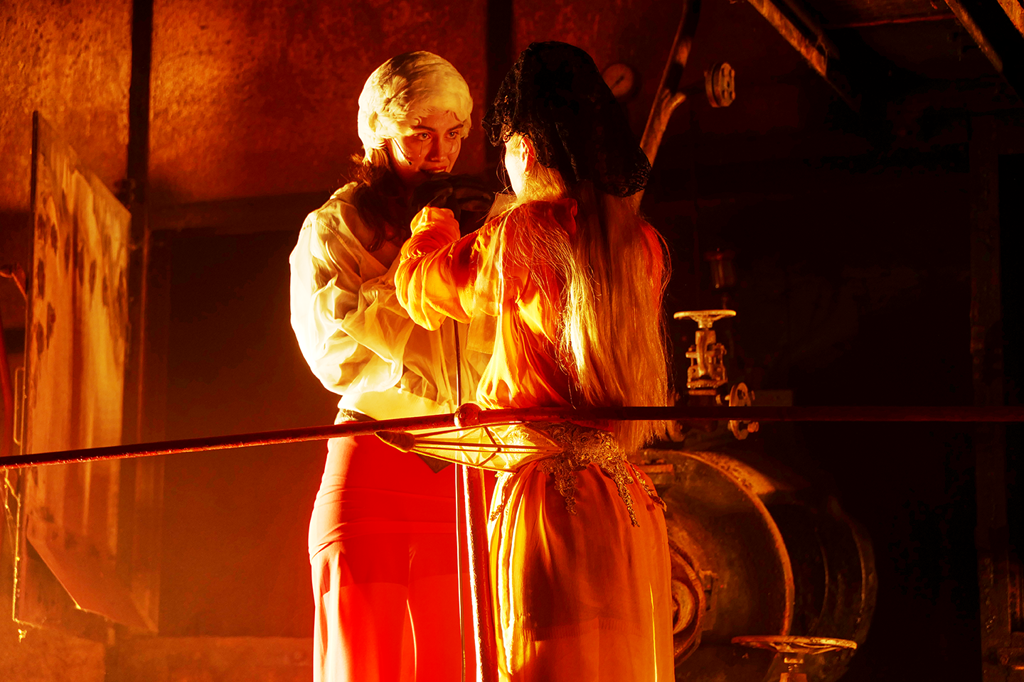 V Praze si zaslouží zvláštní pozornost fotografie z inscenace »Empusion« inspirované stejnojmenným románem Olgy Tokarczuk. Tato divadelní inscenace Lužického festivalu 2024 byla loni úspěšně uvedena na Pražském divadelním festivalu německého jazyka v DOXu.